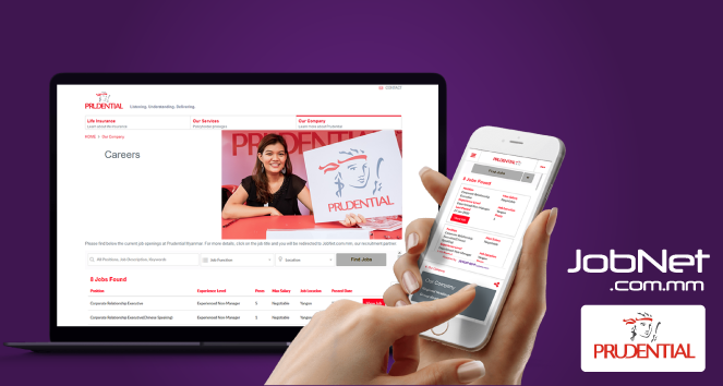 Prudential is one such company that has optimized their hiring process using the Corporate Board feature hosted by JobNet. This function — an online version of the traditional job board but specific to Prudential’s hires — has been revolutionary, allowing Prudential to automate its recruitment processes and maintain a thorough record of all inbound CVs and JobSeekers in an organized, digital format no matter if they visit JobNet.com.mm or through Prudential’s website.