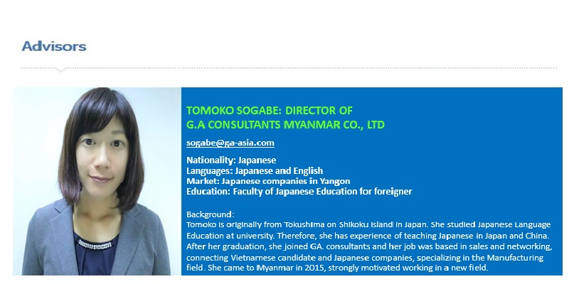 - Administrating the recruitment information on our company Website 「JobBank」 for Myanmar job seekers