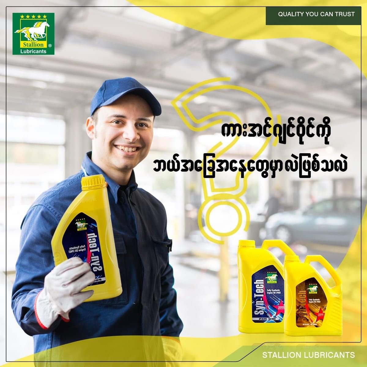 Stallion Myanmar (Quality Stallion Lubricants Distributor) is one of the leading brands in the region. Since 1996, we provide a comprehensive range of products to the automotive, industrial and commercial industries to Stallion Myanmar is committed to continuously invest in manpower, skills, technologies and facilities to keep abreast of out customers’ needs.